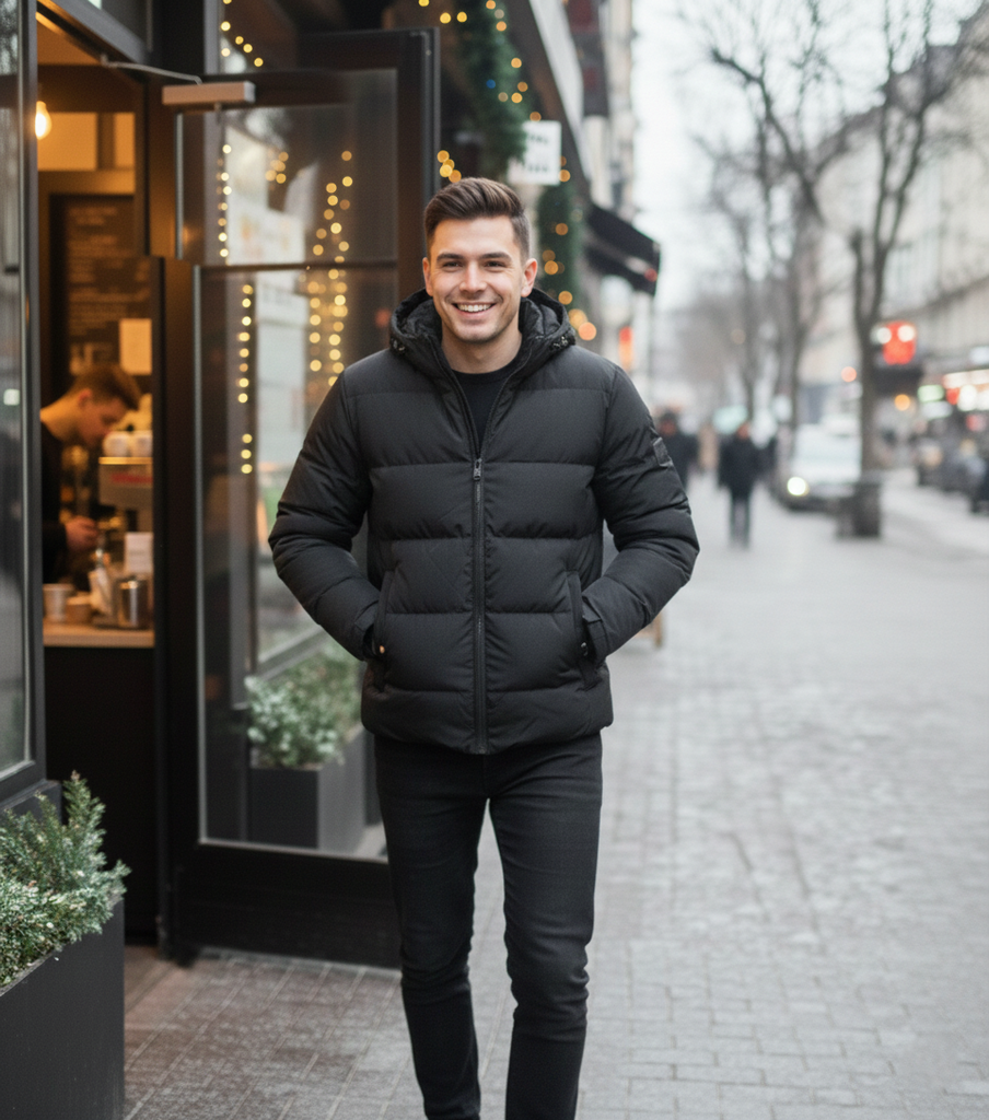 shop now«Κομψό, ζεστό και πάντα διαχρονικό. Το μαύρο φουσκωτό μπουφάν που χρειάζεσαι για τις κρύες μέρες του χειμώνα — με άνετη εφαρμογή και premium εμφάνιση. Τώρα διαθέσιμο σε τιμή έκπτωσης!»