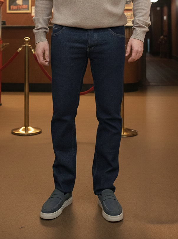 Highlights: σταθερό σκούρο μπλε χρώμα, κομψή γραμμή που κολακεύει, άνεση χάρη στη σωστή ελαστικότητα και κυρίως ευκολία συνδυασμών — ταιριάζει με όλα, από απλό t-shirt και πουλόβερ μέχρι πουκάμισο ή ακόμη και σακάκι για πιο προσεγμένες εμφανίσεις. Διαχρονικό, στιλάτο και πολυλειτουργικό.