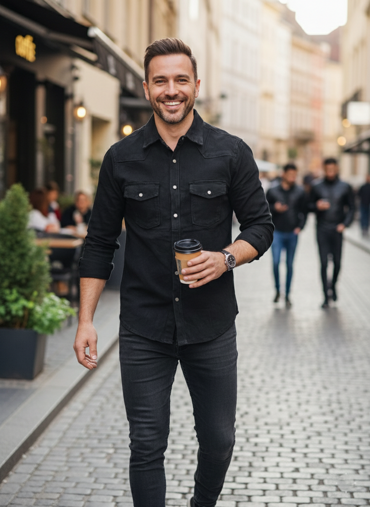 Ένα αντρικό τζην slim fit, χωρίς ξεβάμματα και χωρίς φθορές, είναι το απόλυτο «καθαρό» κομμάτι της σεζόν.