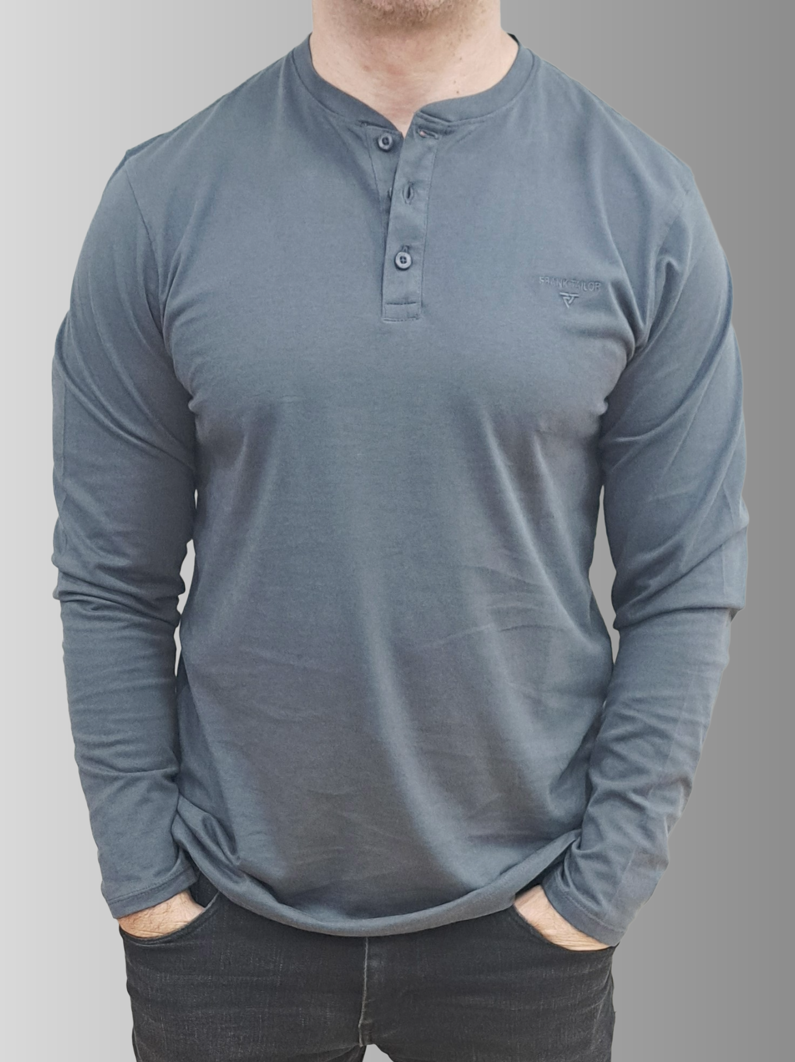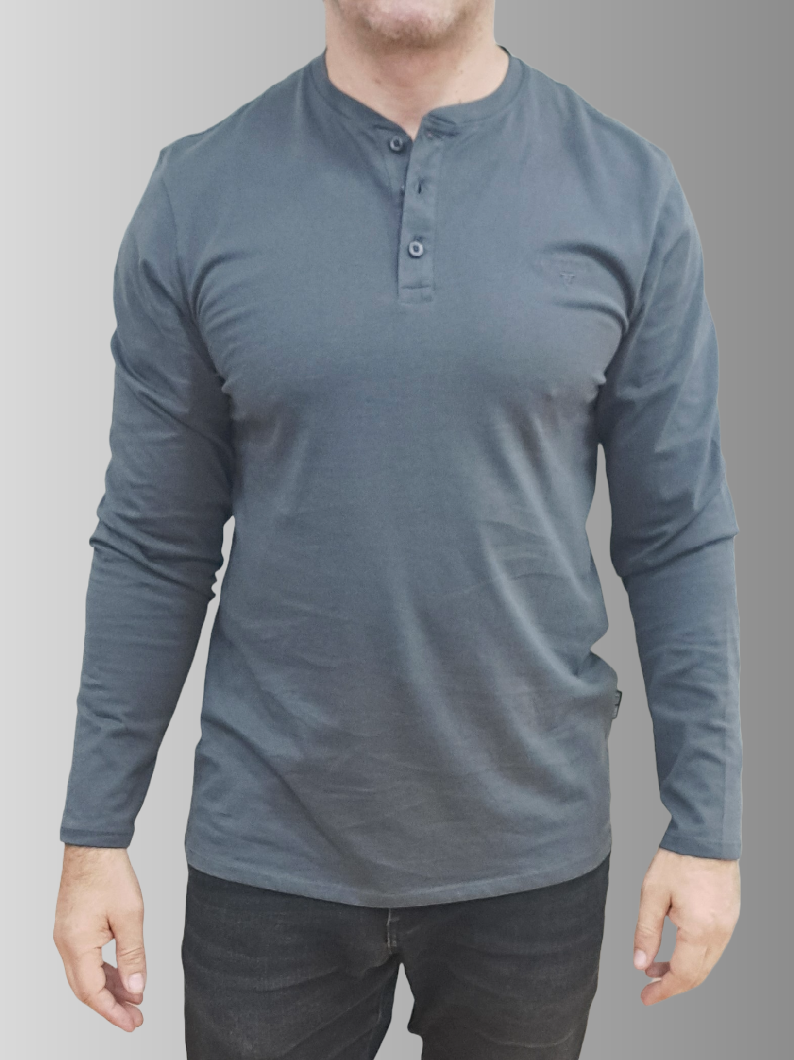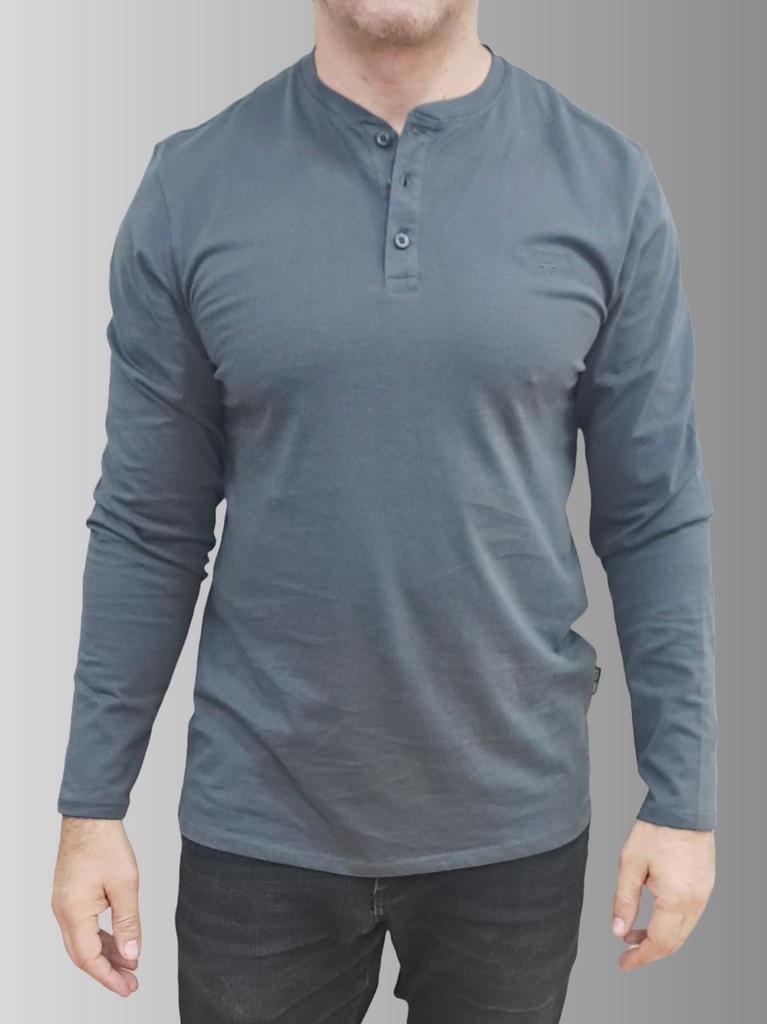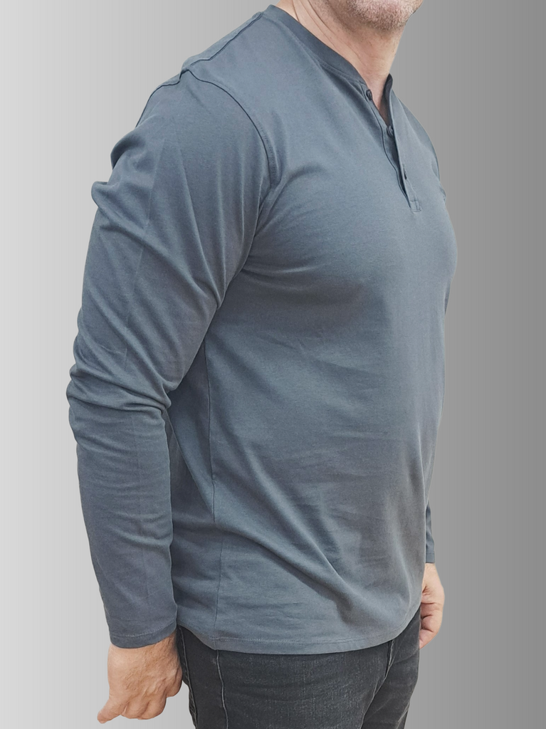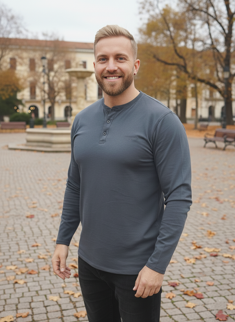 Break free from boring basics with this bold henley that refuses to play it safe. The relaxed fit gives you room to move and breathe, while the front button fastening lets you control your look—button up for polished, unbutton for edge. Long sleeves mean you're ready for anything, and that sophisticated grey? It's the perfect canvas for your attitude. This isn't just a shirt; it's your statement piece that works harder than you do.