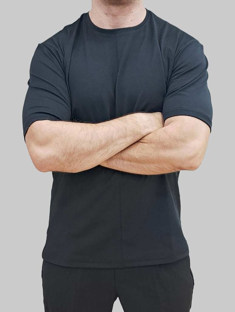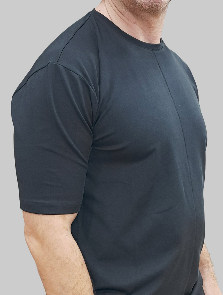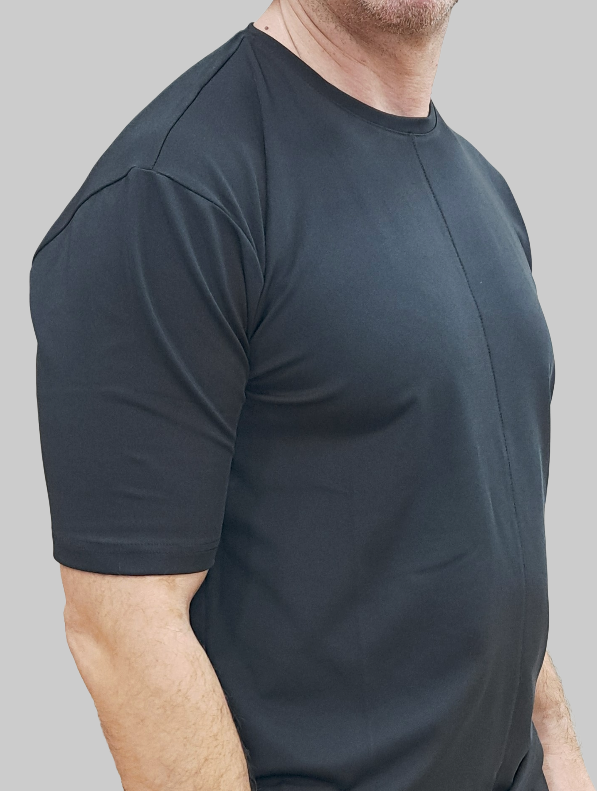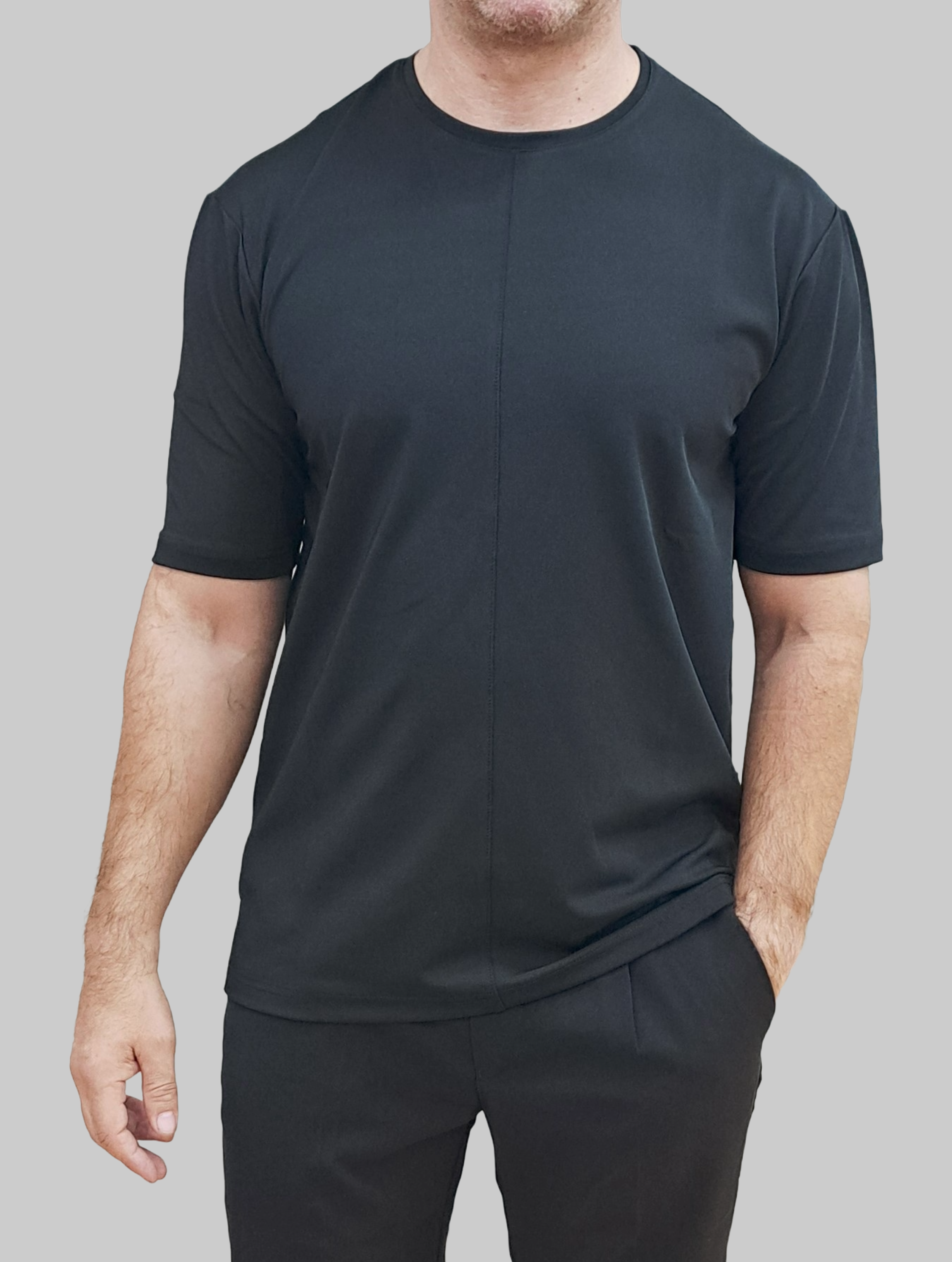 Experience comfort and style with the MC Relaxed-Fit T-Shirt, crafted from a heavyweight blend of 50% cotton and 50% viscose for breathable durability. Its relaxed silhouette and standard length ensure an easy, flattering fit, while the round lapel collar and short sleeves provide classic appeal. Finished in a versatile black, this tee offers effortless everyday wear with a straight hem that complements any outfit. Perfect for those seeking laid-back comfort without compromising on quality or style.
