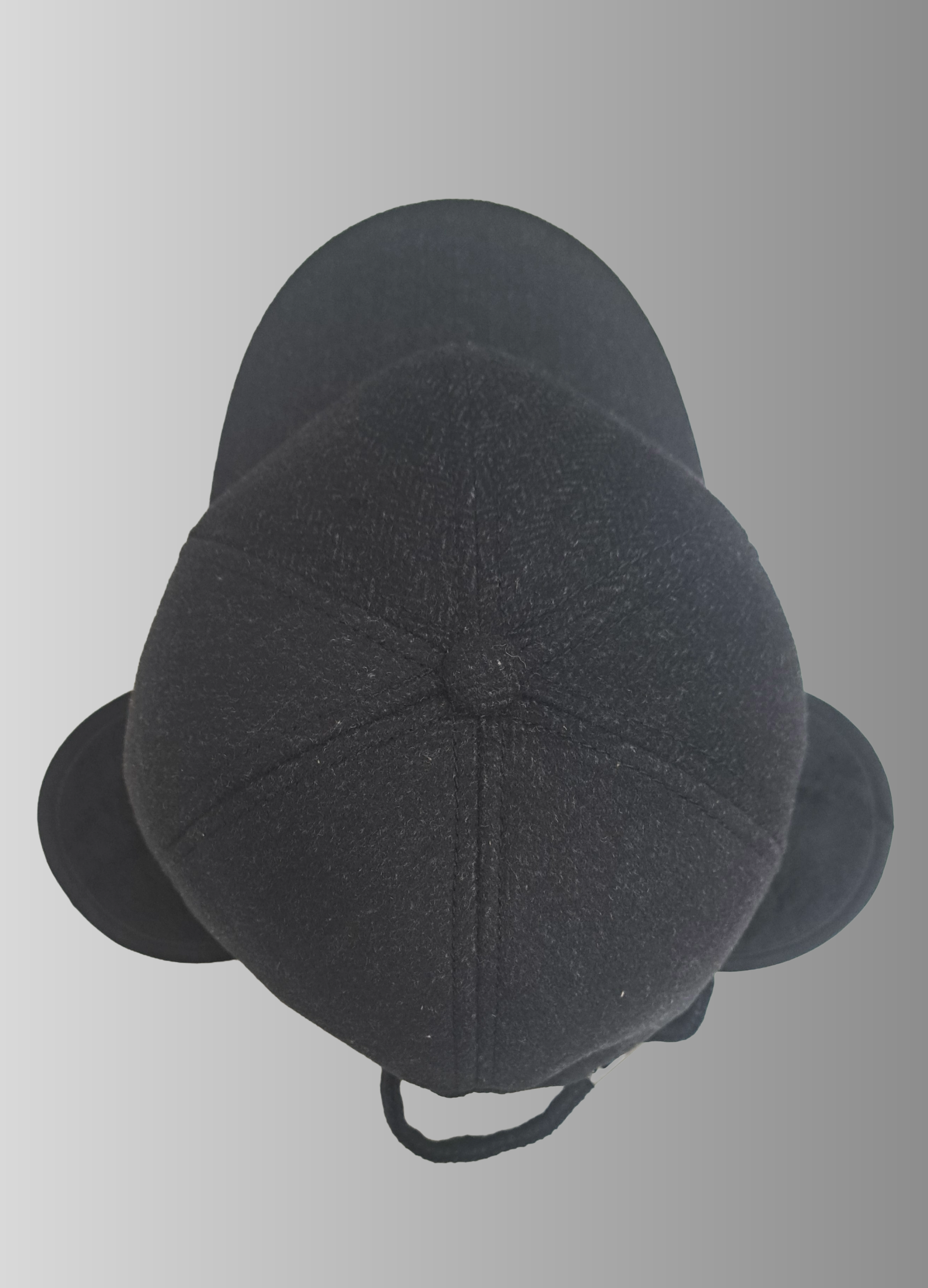 D Cap cotton and wool fabric with a sfin finish. Adjustable hook-and-loop strap fastening .with earcaps. dark grey