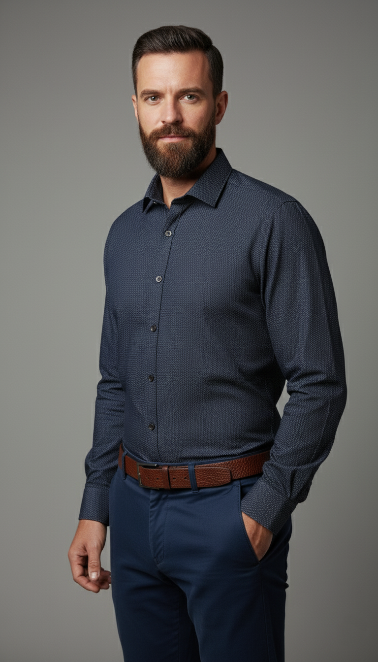 Elevate your wardrobe with the BRD Slim-Fit Shirt in a stylish blue raf color. Crafted from soft cotton fabric, this shirt offers a comfortable yet tailored fit that enhances your silhouette. Featuring a classic shirt collar, long sleeves with buttoned cuffs, and a neat button-front closure, it perfectly balances sophistication and ease. The rounded base adds a modern touch, making it ideal for both casual and smart occasions. Designed to impress, this shirt combines quality and style effortlessly.