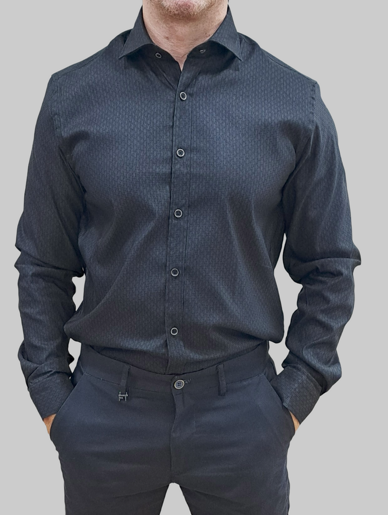The BRD Slim Fit Easy-Iron Shirt in dark grey combines style and practicality with a structured cotton blend fabric that ensures a sleek silhouette. Its Comfort Stretch technology offers thermal insulation and breathability for all-day comfort. Thanks to its crease-resistant design, this shirt requires no ironing, making it perfect for a polished look with minimal effort. Featuring a semi-rex collar and long sleeves with buttoned cuffs, it adapts seamlessly to both professional and casual settings. Elevate your wardrobe with this breathable, easy-care essential.
