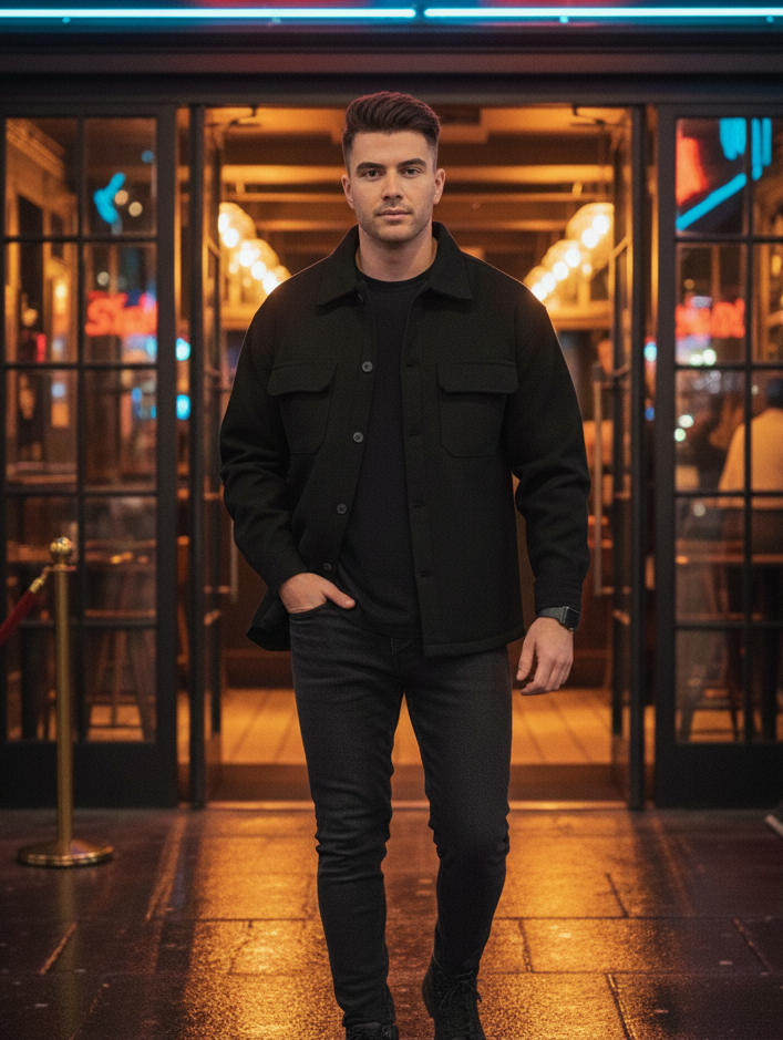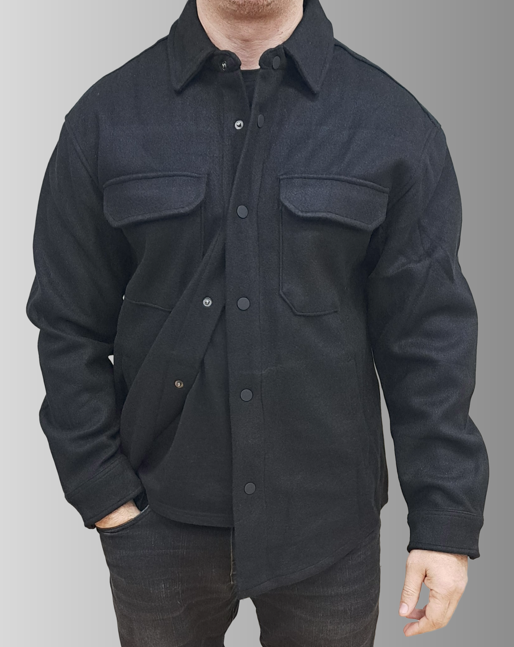 FLANNEL OVERSHIRT WITH POCKETS BLACK