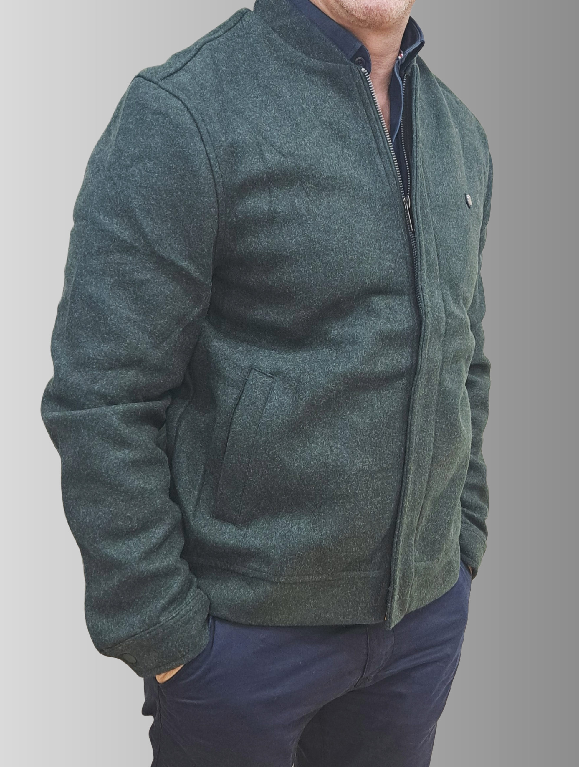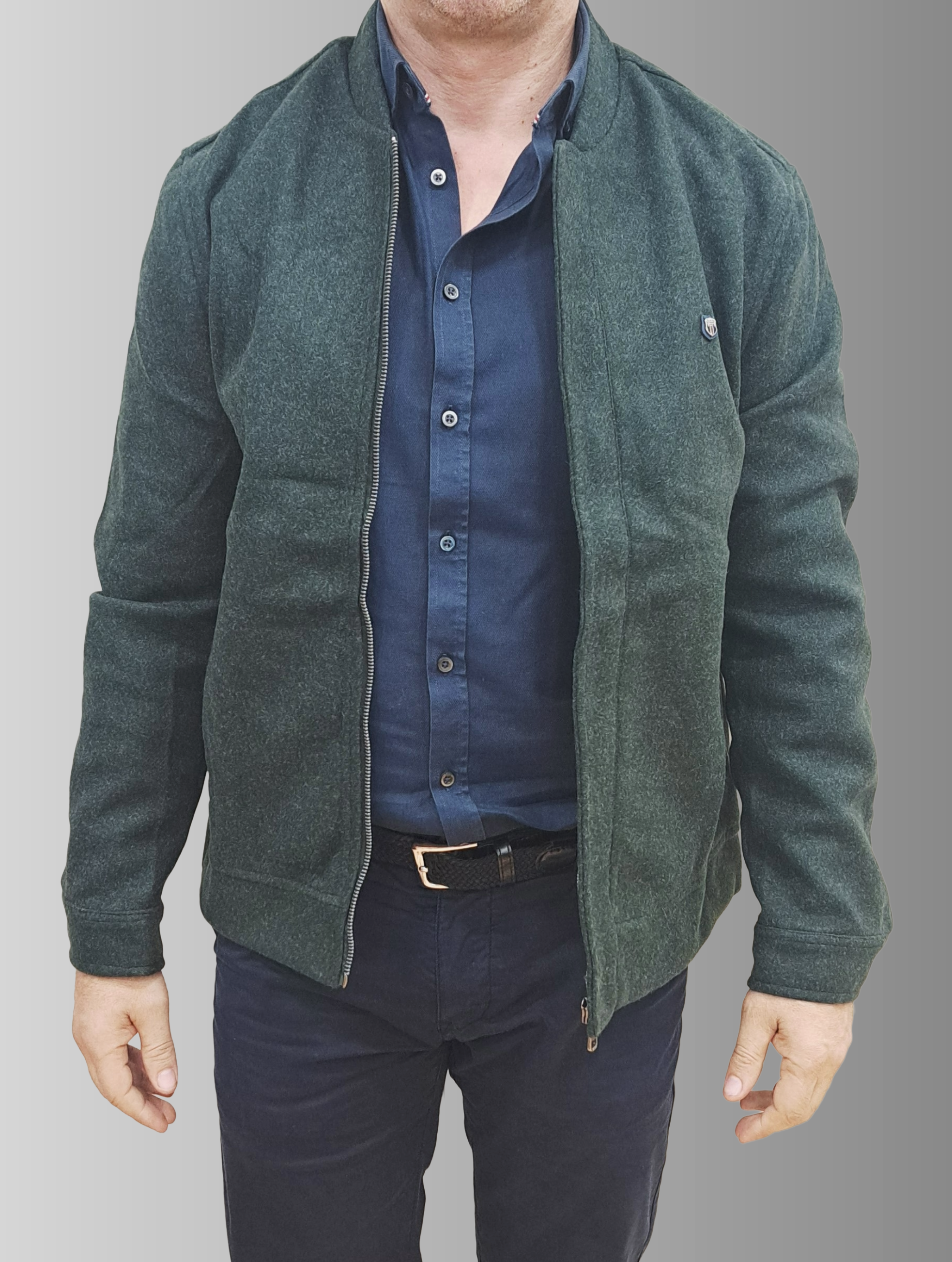 Bomber style. Bomber jacket with ribbed collar. Ribbed neck, cuffs and hem. Side zip pockets. Inner lining. Elastic straight hem. Front zip closure.Green color