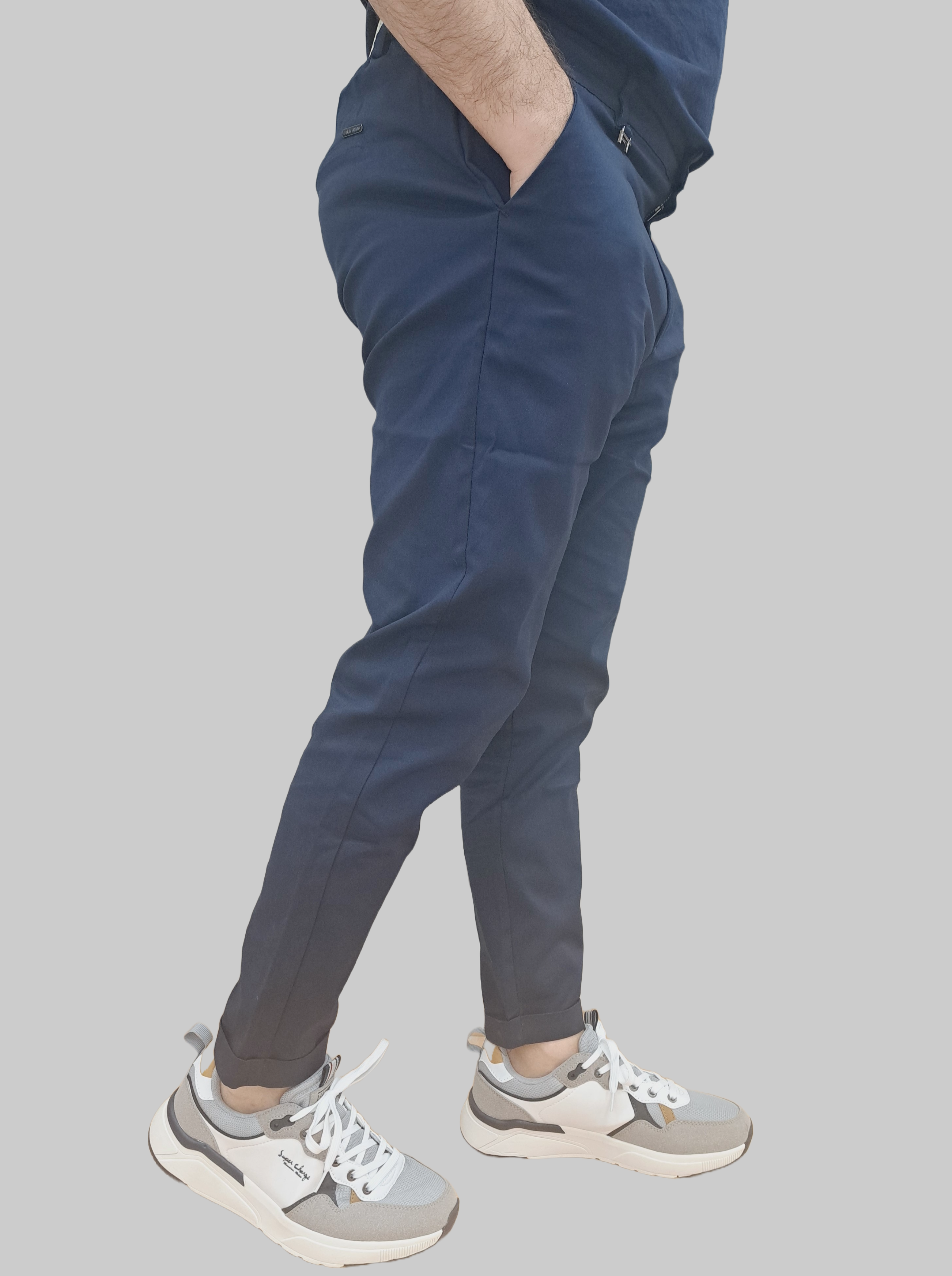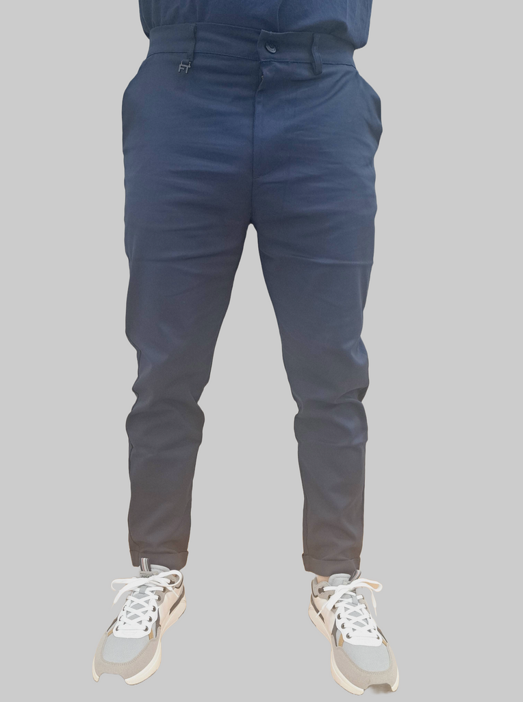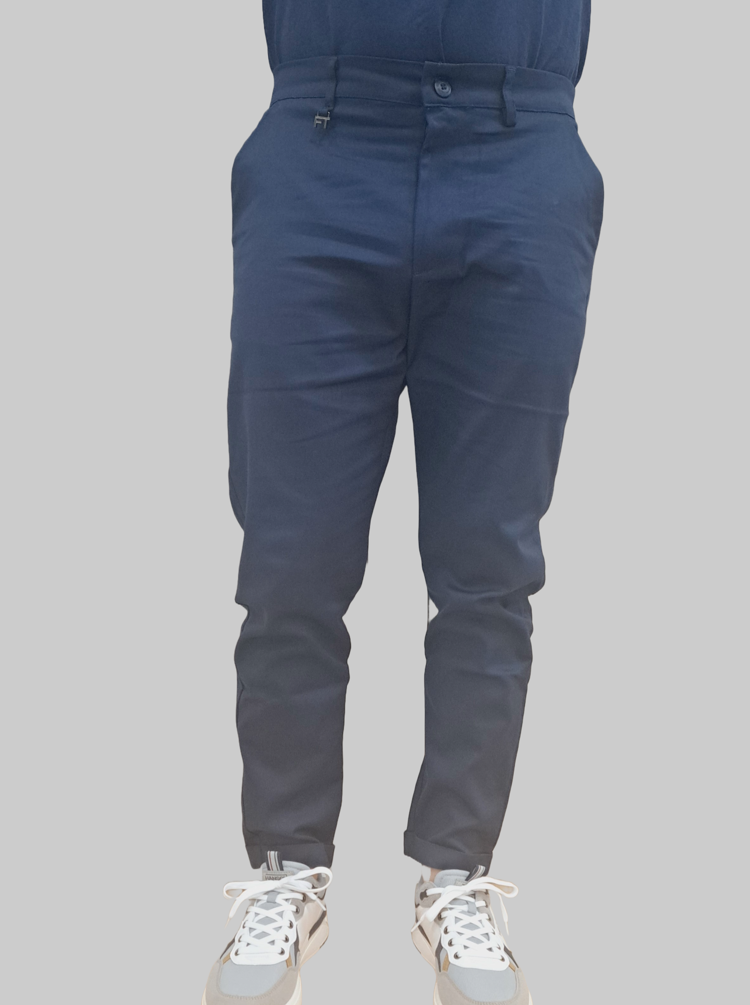 Introducing our FT Slim Fit Comfort Trousers made from highly elastic fabric for ultimate comfort. These trousers feature an elastic waistband, front and rear pockets, and a zip fly with top button fastening. Made with the finest cotton and a touch of blue color for added sophistication. Elevate your wardrobe with these exclusive trousers.