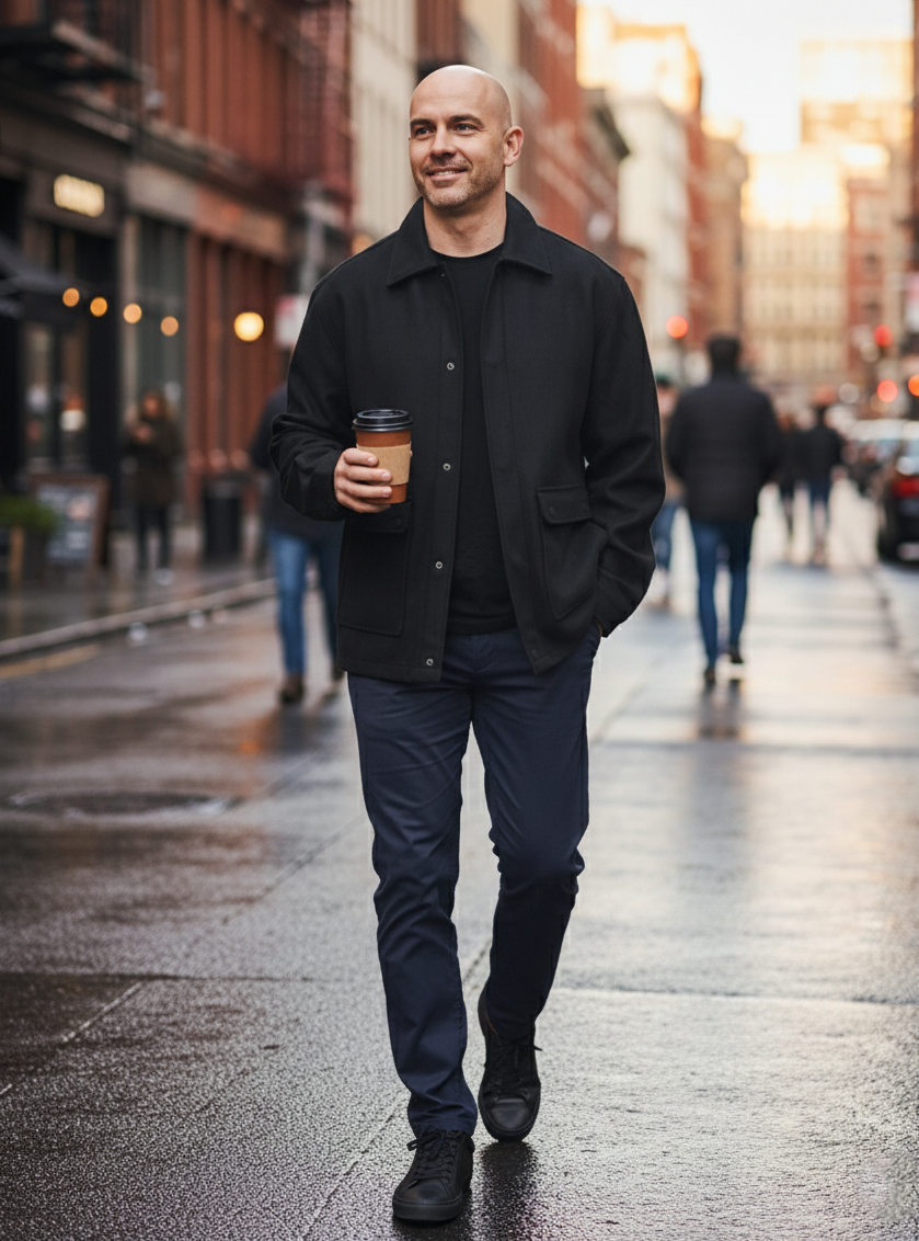 Elevate your layering game with this refined short coat, crafted from a premium blend fabric that balances durability with comfort. The inner padding provides subtle warmth without bulk, while the classic shirt collar and long sleeves deliver a polished silhouette. A concealed buttoned placket ensures a streamlined front, and dual side pockets offer practical functionality. Perfect for transitional seasons, this versatile piece transitions seamlessly from casual to smart-casual settings.