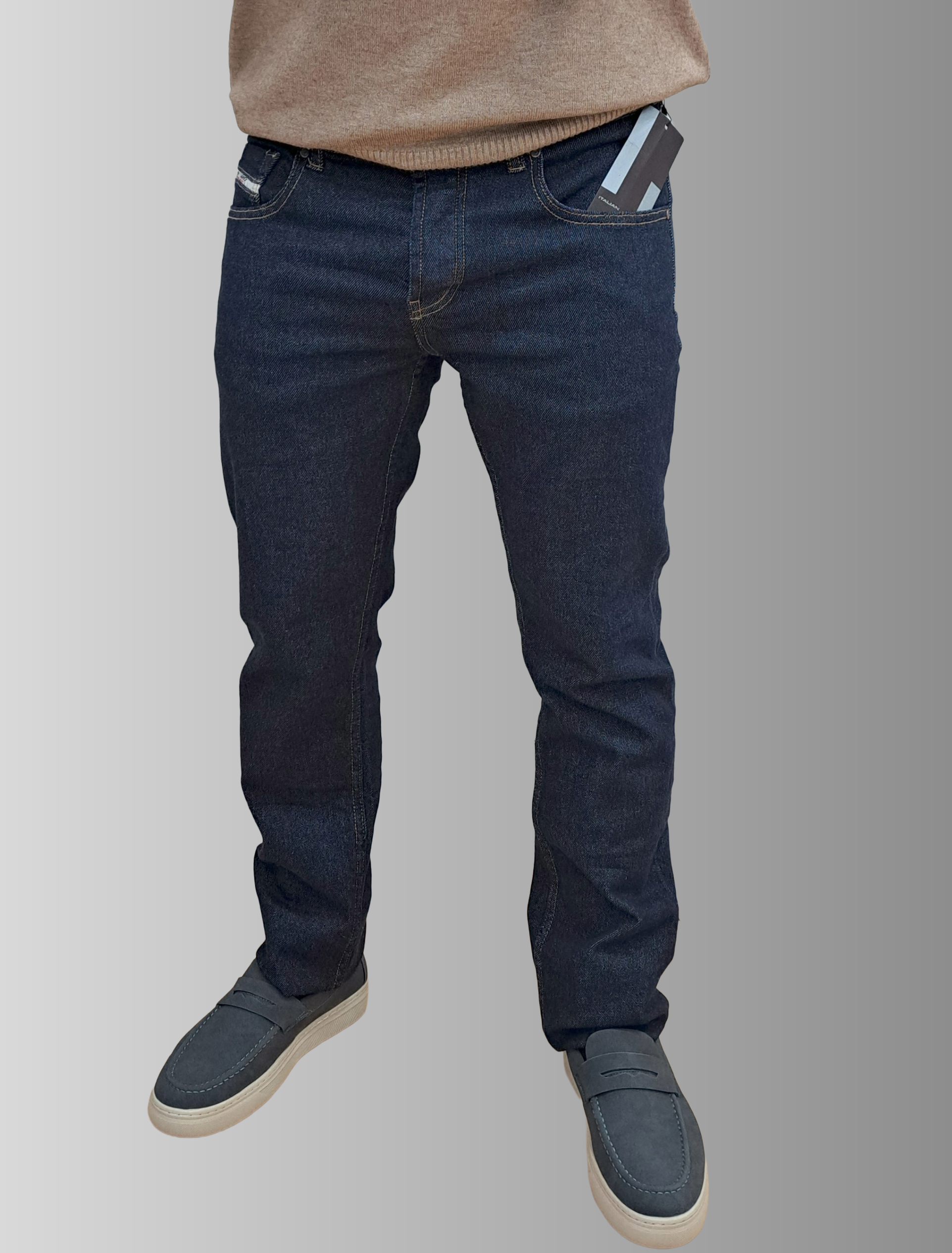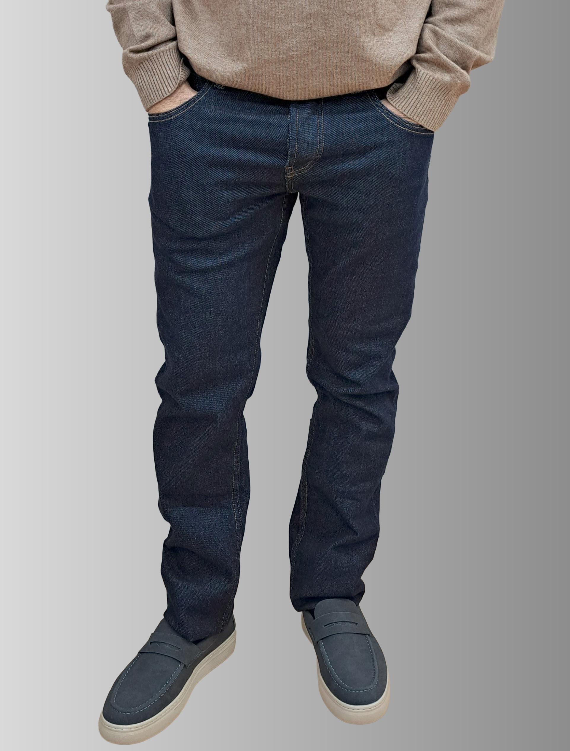 Slim fit jeans: this fit has a slightly tailored silhouette, tight at the waist and legs. Front zip and top button fastening. Five-pocket design. Soft, slightly plush interior for warmth and comfort.